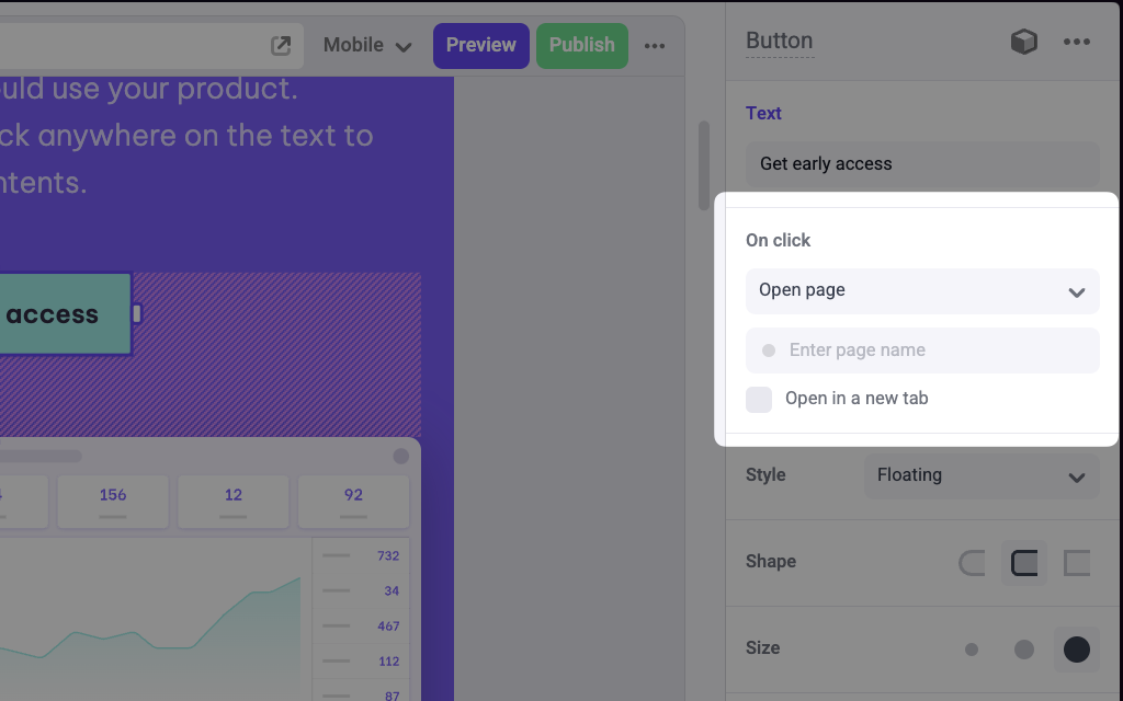 The following example adds an Link control to the link prop of a Button component.